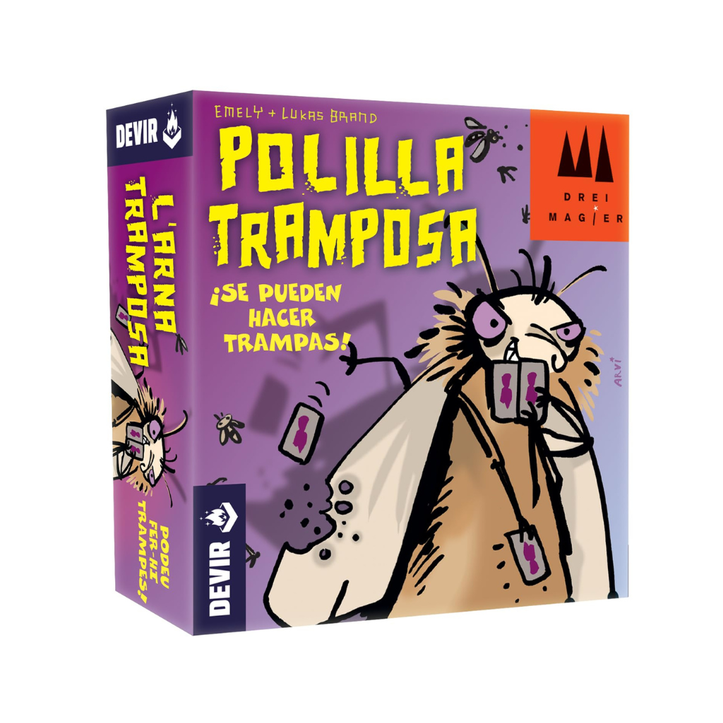 Bienvenidos a Polilla Tramposa, el juego de cartas más gamberro y original que encontrarás en el mercado. Si alguna vez te han regañado por intentar esconder una carta o mirar donde no debes, este es tu juego. En este título de la serie de juegos infantiles y familiares de los hermanos Brand, el objetivo es ser el primero en quedarse sin cartas en la mano. ¿El problema? Hay cartas que, por reglamento, no pueden jugarse de forma normal, por lo que tendrás que hacer trampas para deshacerte de ellas.