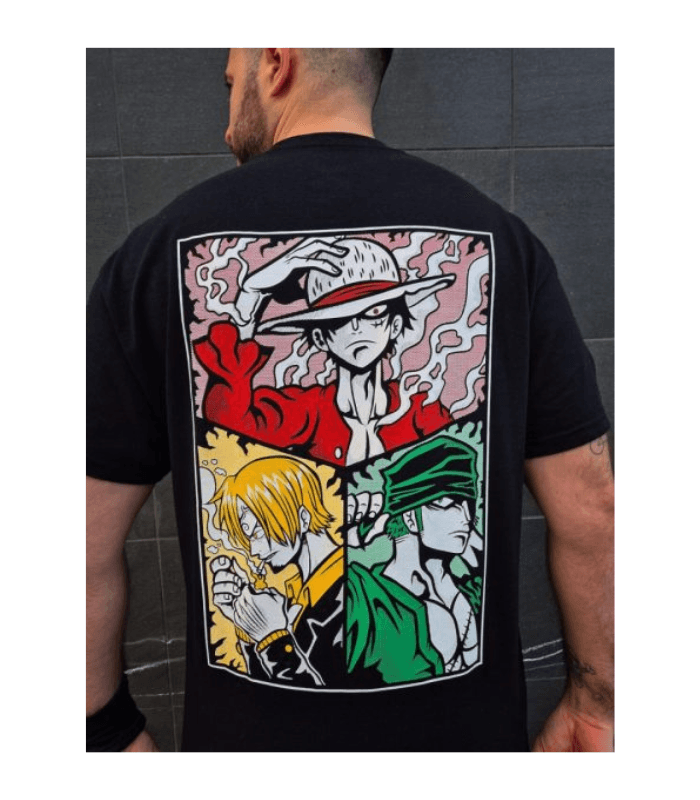 Camiseta Monster Trio de la marca de anime Nakama Clothing. Se han reunido los 3 piratas más fuertes de la tripulación del futuro rey de los piratas, para hacer frente a cualquier calamidad.Especificaciones camiseta: